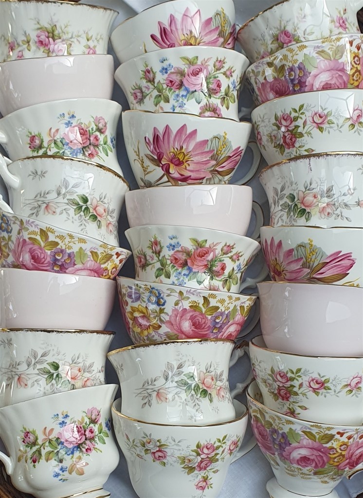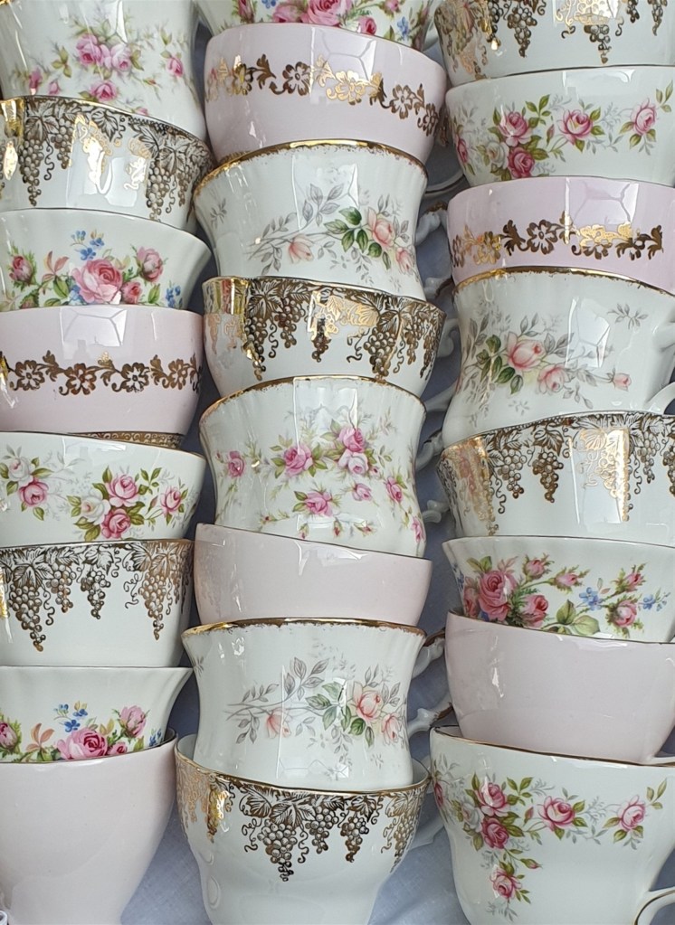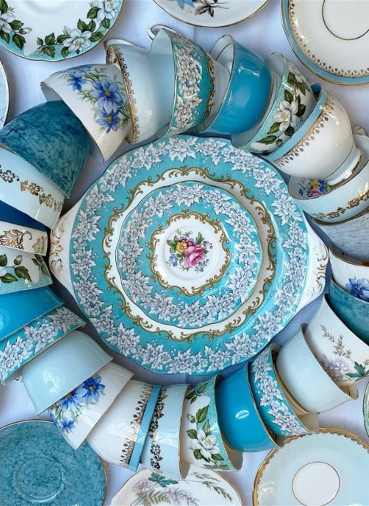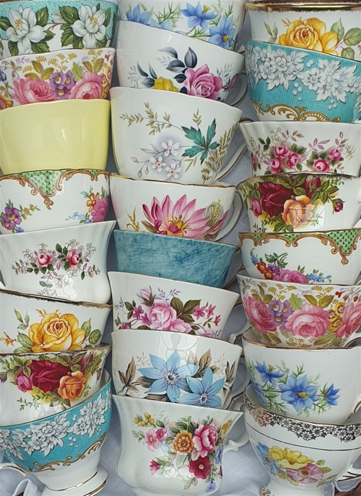 We have an exquisite collection of vintage bone china, featuring an array of beautiful shades, gold detail, and the prettiest designs. We’re sure to have the perfect china to add a touch of vintage glamour to your special occasion.